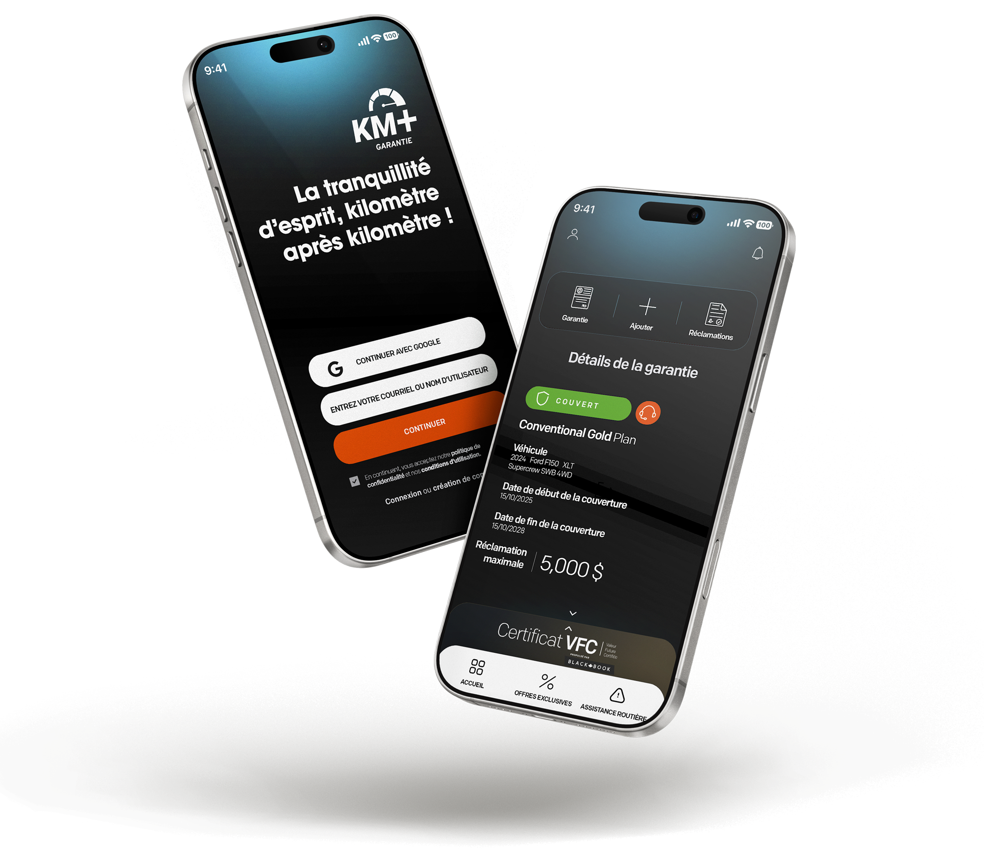 KM+ vous protège contre les bris mécaniques imprévus après l’expiration de la garantie du fabricant, pour tous types de véhicules.